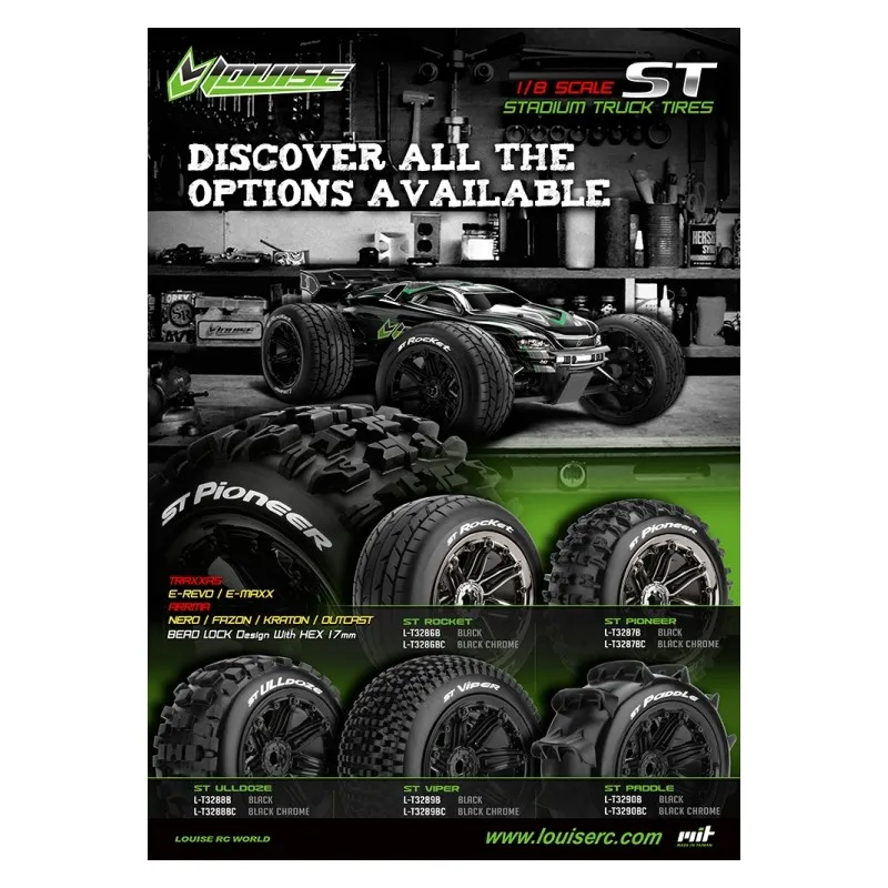 Louise RC World 3286B Däck & Fälg ST-ROCKET 1/8 Truck (Beadlock) Svart (2)